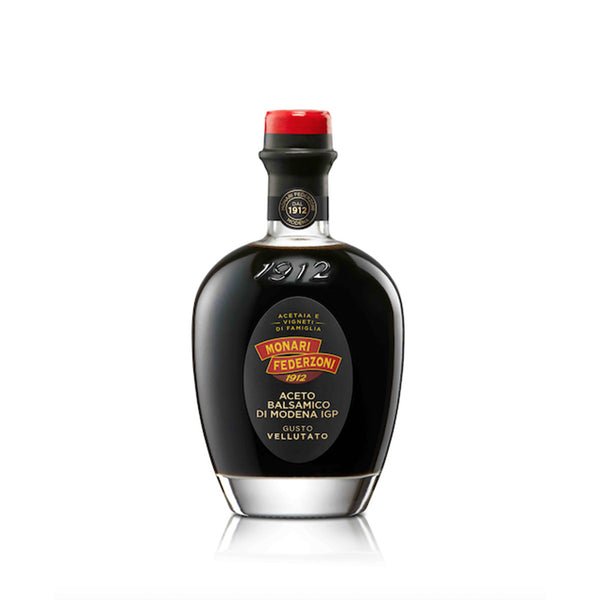 Vinagre balsámico de sabor equilibrado y aroma intenso, elaborado con mosto de uva y vinagre de vino siguiendo la tradición italiana. Ideal para ensaladas, carnes, verduras y quesos, aportando un toque dulce y aromático a tus platos.